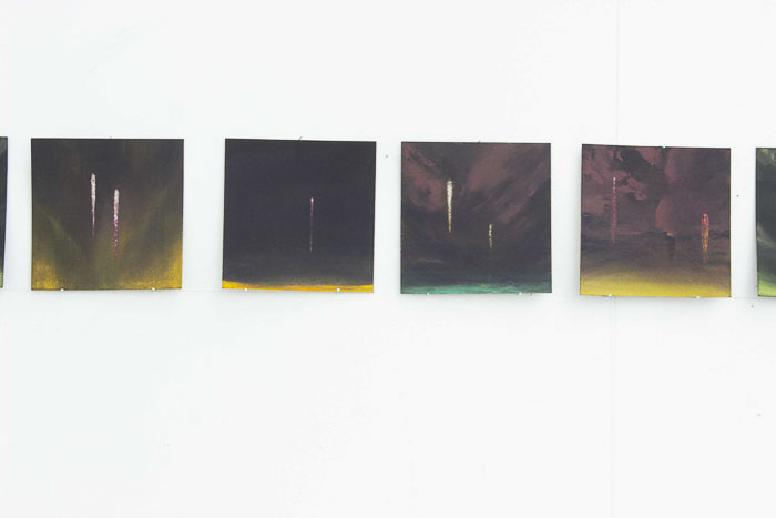 Dessin au pastel sec sur papier, 10 x 10 cm chaque.